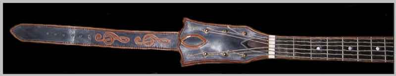 Sac à dos guitare, avec des vrais frettes et points en perle véritable, construit à l'echelle