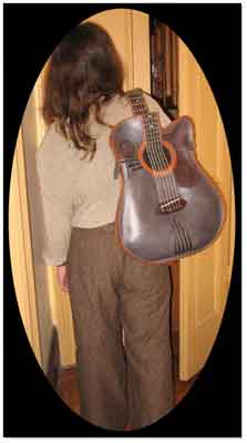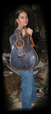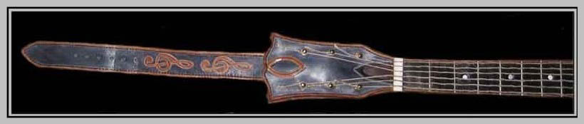 Sac à dos guitare, avec des vrais frettes et points en perle véritable, construit à l'echelle
