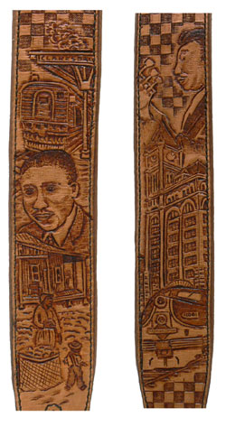 guitar strap depict Muddy Waters story.