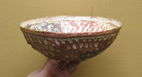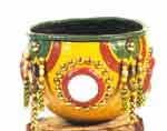 Build on a balloon, tubing attached, covered in pulp with leather detailing |