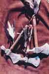 3 of 10 masks made for the film "The Island of Dr Moreau"(laminated paper and hessian) |